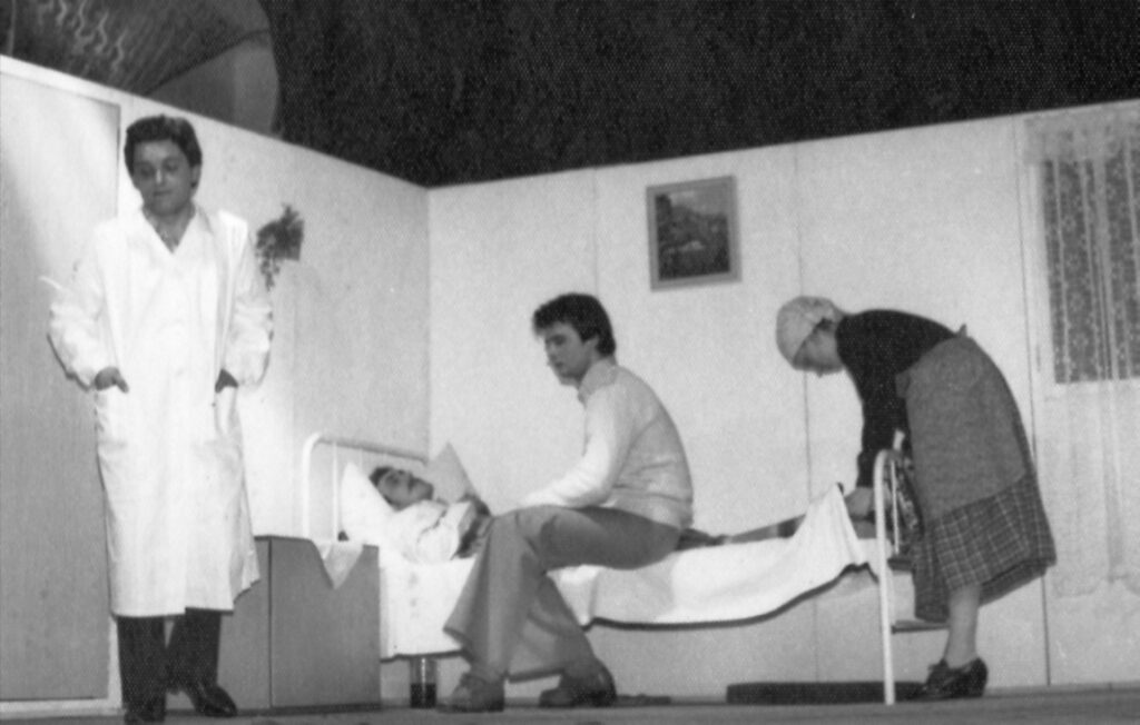 Siposs Jenő: Nagy baj az agybaj című színdarab előadása, a községi kultúrház színpadán.