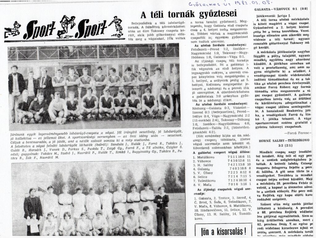 A cikkírónak a hazaiaknál Benkovics játéka, míg a vendégeknél Forró Róbert és Simkó Imre játéka tetszett. A vágai labdarúgó csapatnak, a veretlensége ellenére sem sikerült megvédenie a téli tornát; ugyanis a rosszabb gólarány miatt a Taksony csapata mögé került.