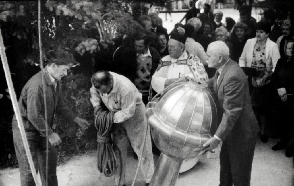 1989-ben Lelovics Endre adminisztrátor serénykedése nyomán megújult az illésházi templom. 1989. október 10-én kezdődött el Bárky Ferenc kassai toronymester vezetésével a toronysisak renoválása. Az új toronygömböt 1989. október 22-én helyezték fel. Képen a toronymester, Lelovics Endre, Hideghéthy Árpád valamint az illésházi hívek.