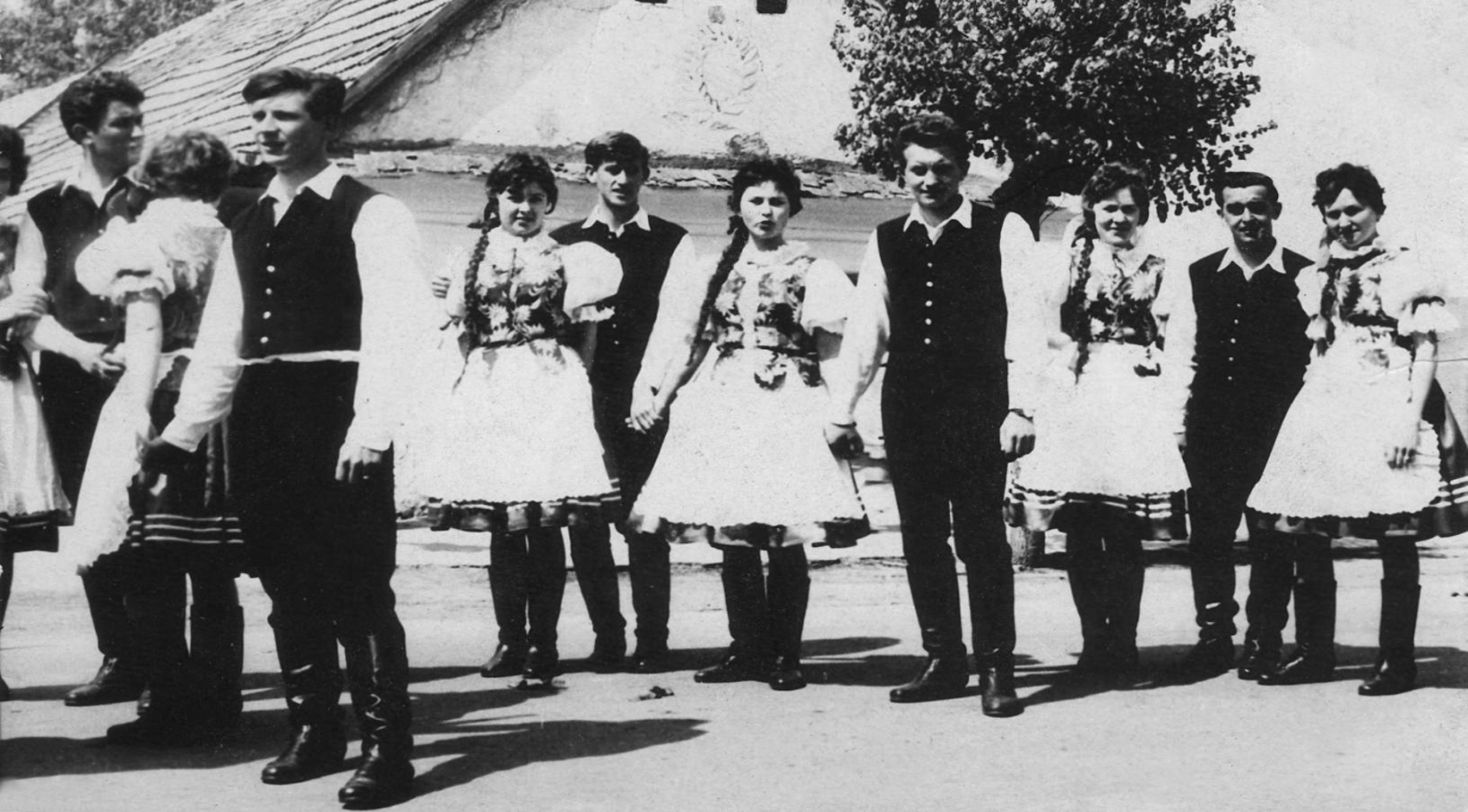 Tornalja egykori Fő utcáján, ma Béke utca, népviseletbe öltözött tánccsoport tagjai. 60-as évek eleje. A fotó Iván Dezső emlékalbumából van.