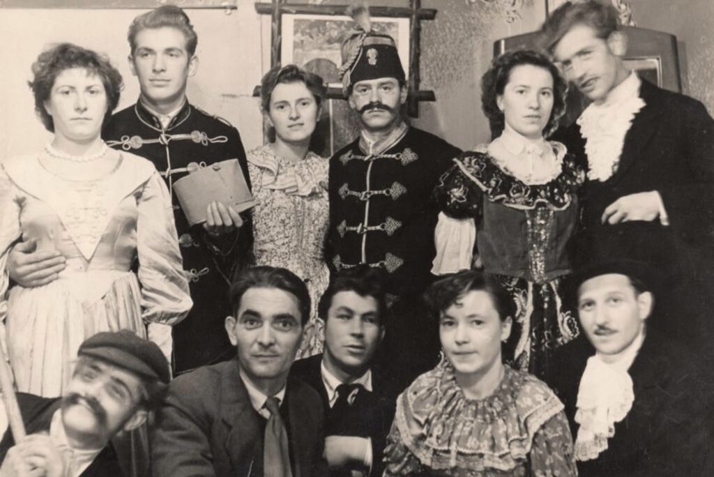 Állnak, balról jobbra: Jalsovszky Lídia (született Puczoló), Forró István, Zsákovics Anna, Anda György, Jalsovszky Piroska (született Forró), Kamenár László, Előttük, balról jobbra: Karácsony István, Majerník István, Zsigó János, Puskás Erzsébet, Szabó László.