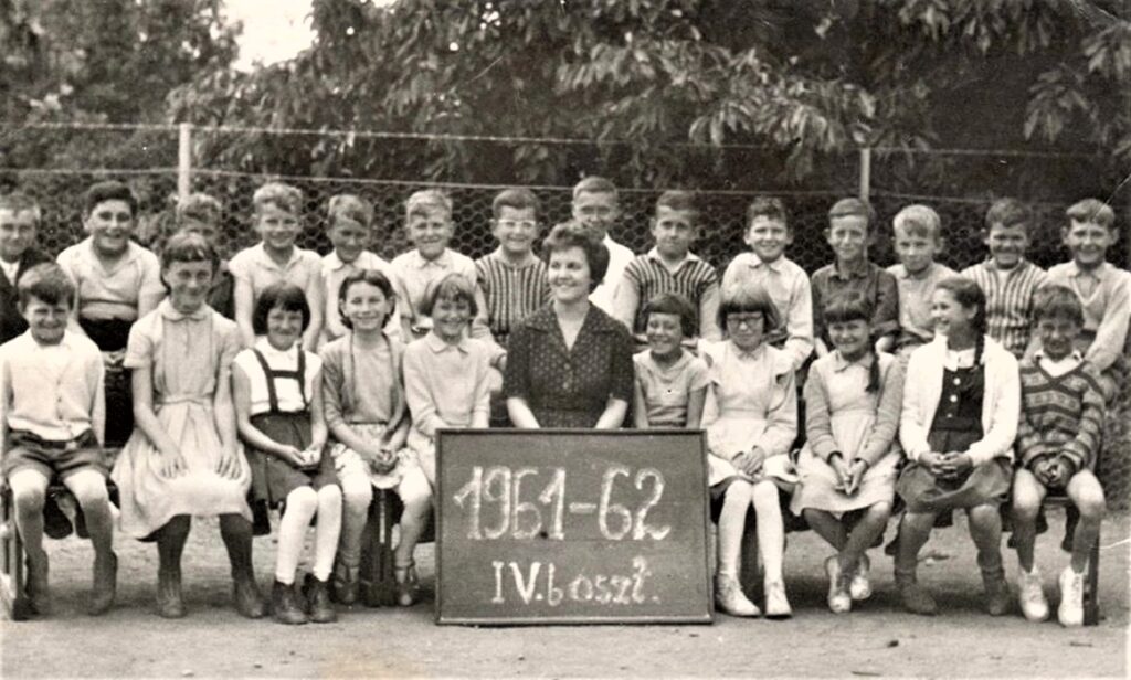 A Vágai Kilencéves Alapiskola V. b osztálya az 1961/1962-es tanévben