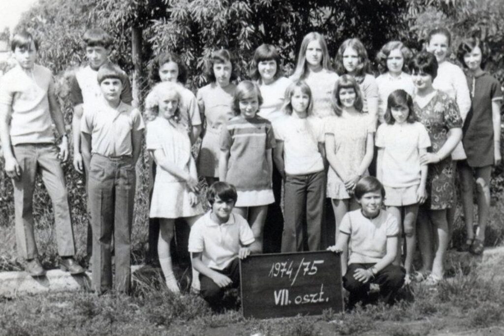 A Vágai Kilencéves Alapiskola VII. osztálya az 1974/1975-ös tanévből
