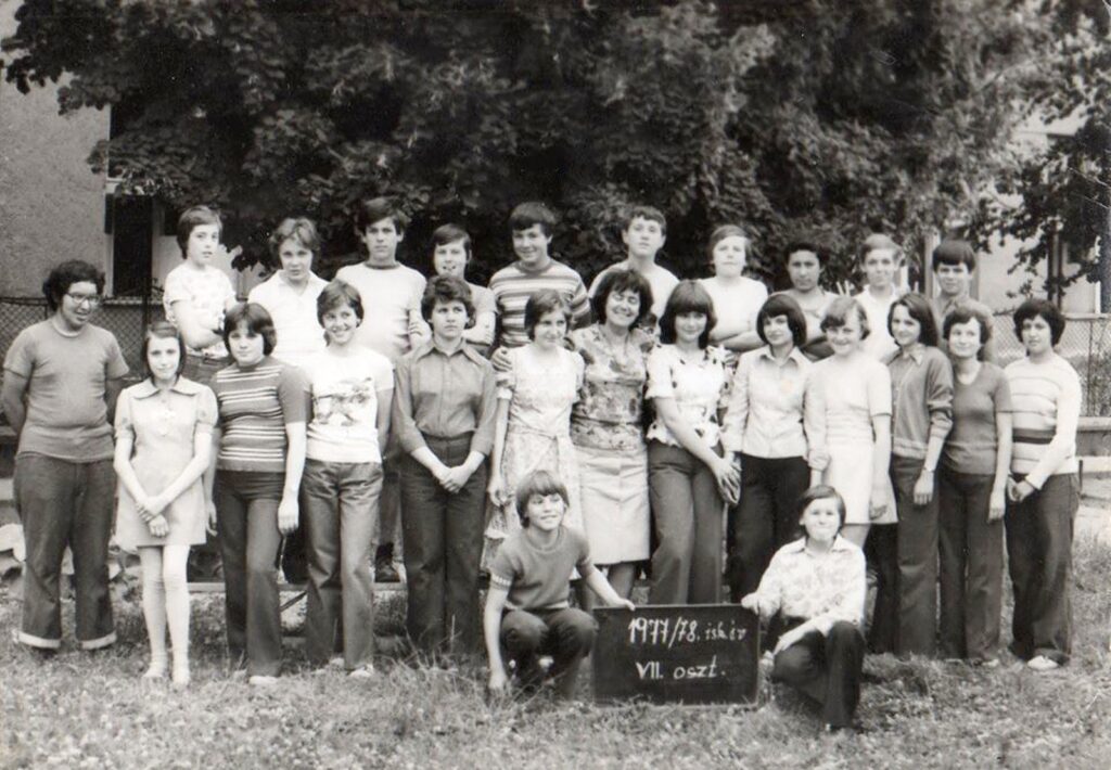 A Vágai Kilencéves Alapiskola VII. osztálya az 1977/1978-as tanévben