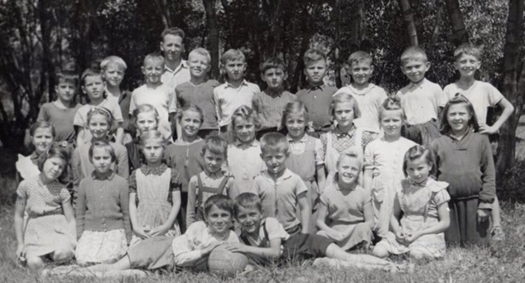 Hátsó sor balról jobbra: Czakó László, Novoszád Ferenc, Mahely László, Szabó László (tanító), Novoszád István, Horváth János, Majerník János, Vedrődi Antal, Kotrba László, Kubányi István, Klaszta Zoltán, Práger Tibor.
