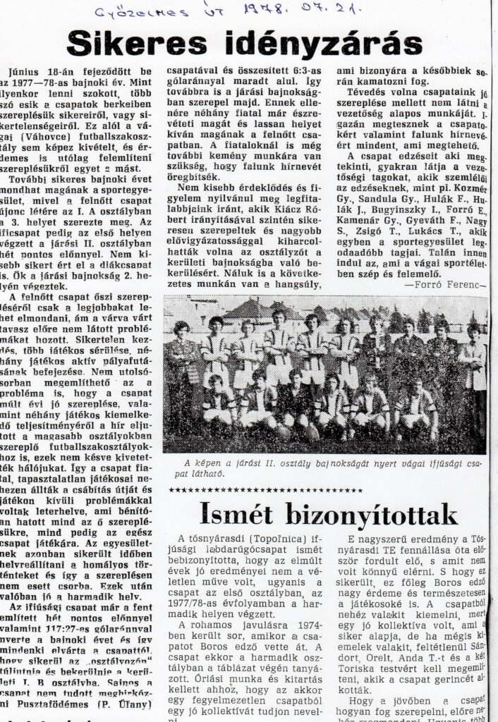 Cikkíró: Forró Ferenc írása, a Győzelmes Út című hetilap, 1978. július 21-i számában