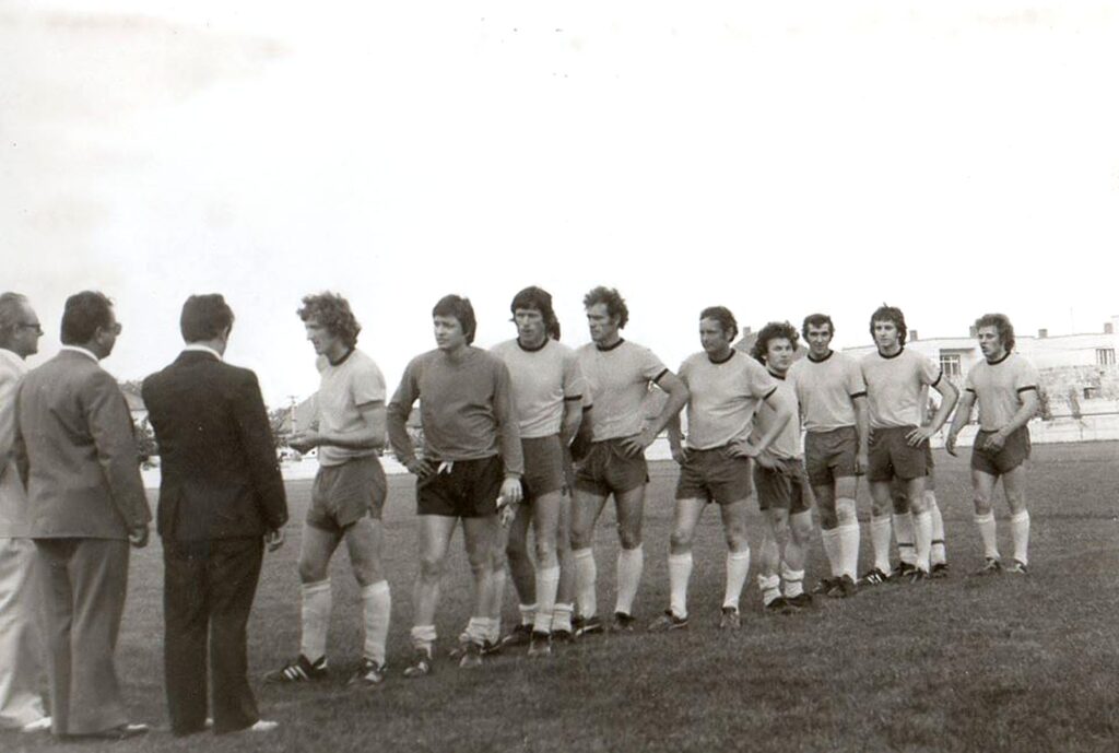 Balról jobbra: Kozmér Győző (clubelnök), Flaskár László (HNB-elnök), Hulák Jenő (vezetőségi tag), Forró Róbert (csapatkapitány, csatár), Cellárik Vladimír (kapus), Forró Milan (hátvéd), Kubovics Miklós (hátvéd), Lulovics István (csatár), Puskás György (csatár), Bugyinszky László (középpályás), Horváth Jenő (középpályás), Szabó Róbert (csatár).
