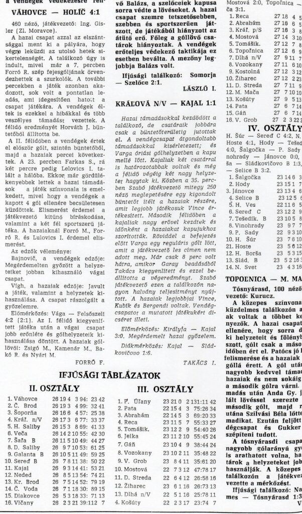 Hazai gólszerzők: Zsigó Marian, Kamenár Miroslav, Bakó Róbert, Nyári Mihály