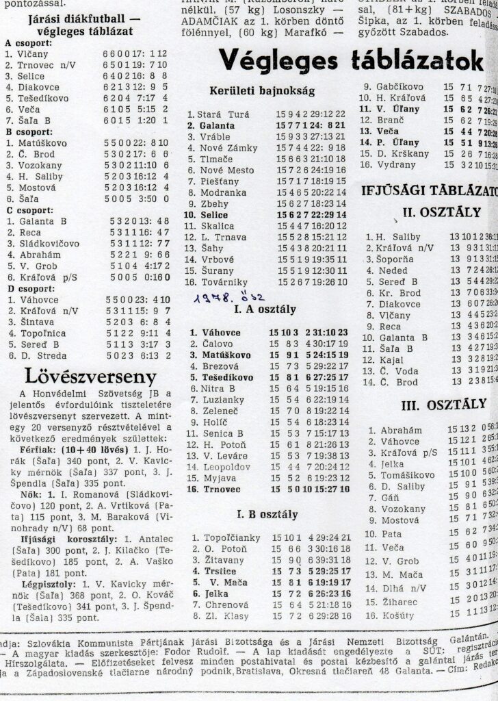 2. A vágai ifjúsági csapat a III. osztály második helyén áll.