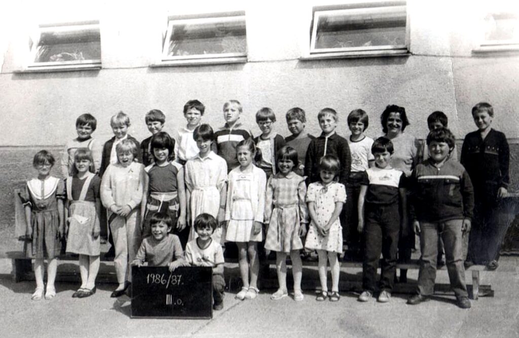 A Vágai Magyar Tanítási Nyelvű Alapiskola III. osztálya az 1986/1987-es tanévből