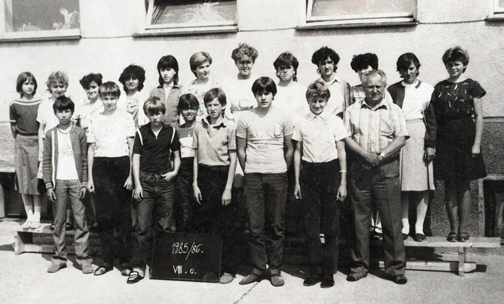 A Vágai Magyar Tanítási Nyelvű Alapiskola VIII. osztálya az 1985/1986-os tanévből