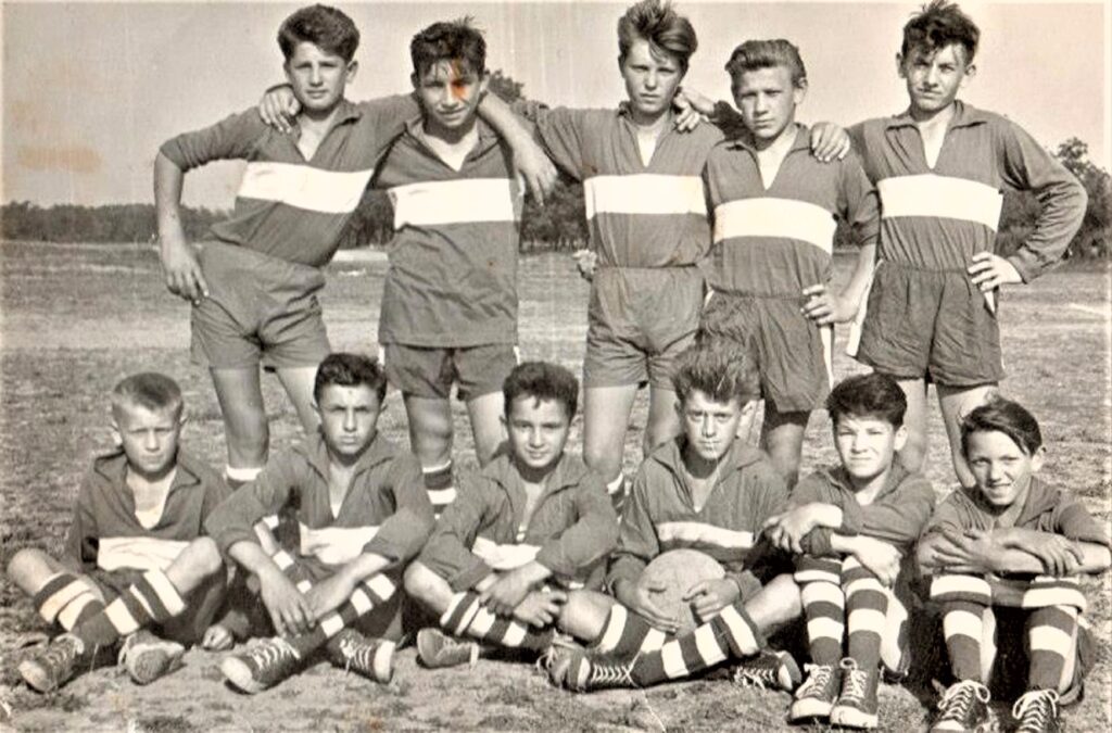 A régi Vág-parti focipályán, a magyar iskola focicsapata.