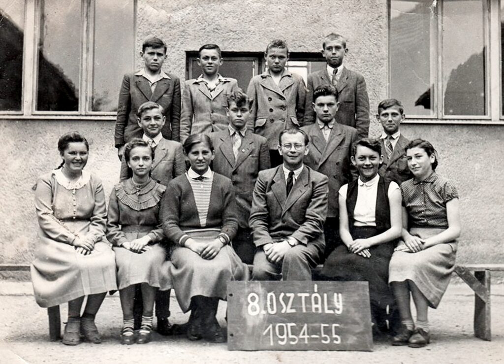 A Vágai Nyolcéves Középiskola VIII. osztálya az 1954/1955-ös tanévből