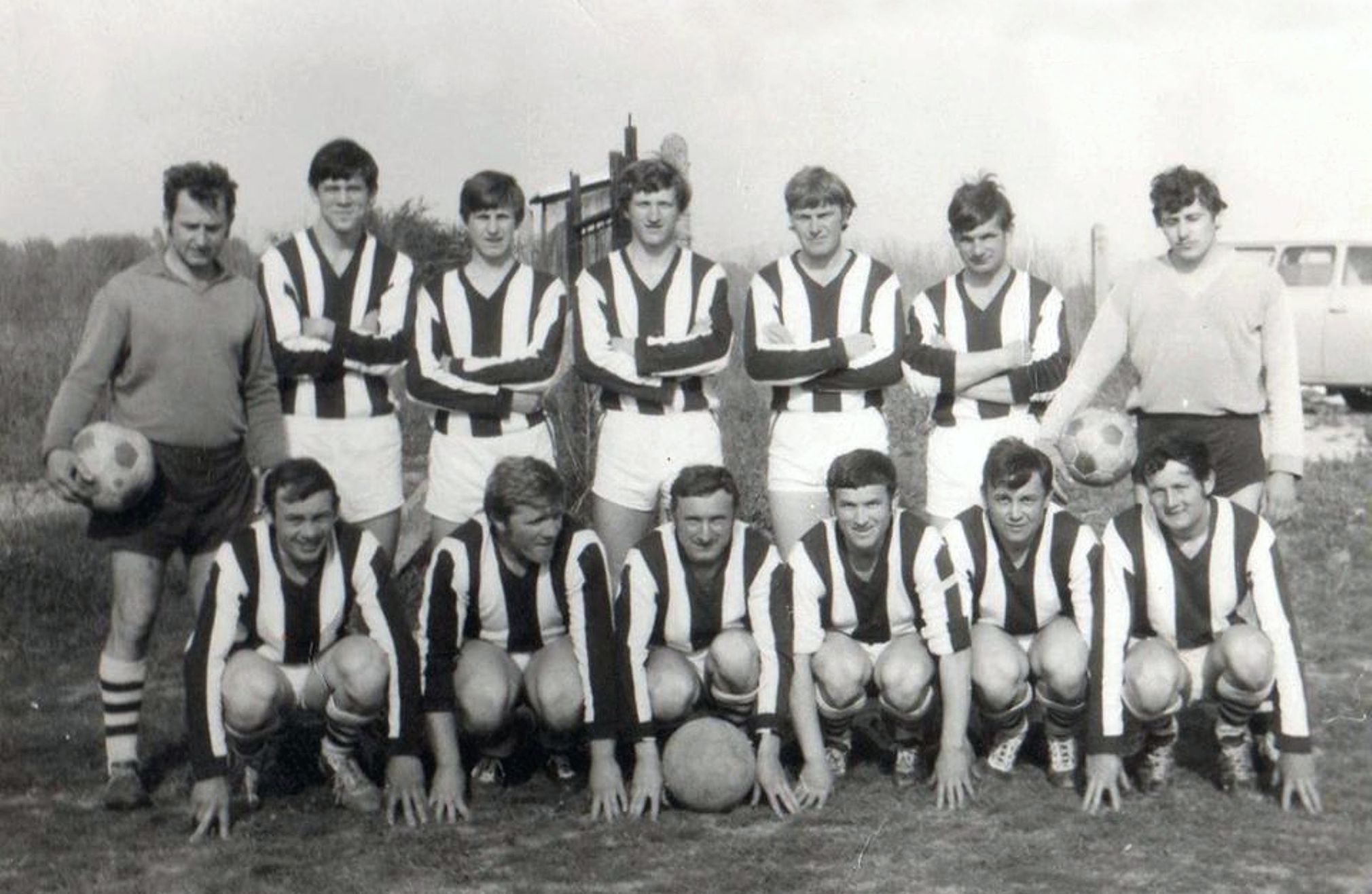 Állnak balról jobbra: Recht Miklós (kapus), Simkó Imre (hátvéd), Horváth Jenő (középpályás), Forró Róbert (csatár), Czakó Gábor (csatár), Adamkó József (hátvéd, de csatár is), Kubica Ödön (kapus).
