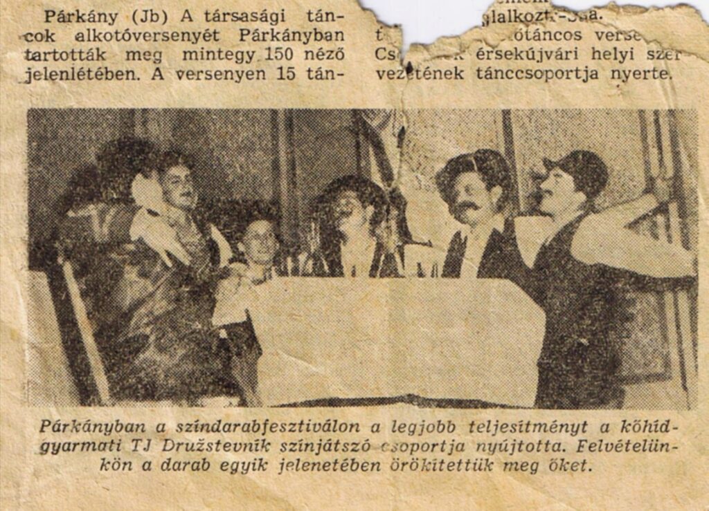 Szigeti József: A vén bakancsos és fia, a huszár. Az 1965-ös párkányi alkotóverseny döntőjének győztese. Korabeli tudósítás.
