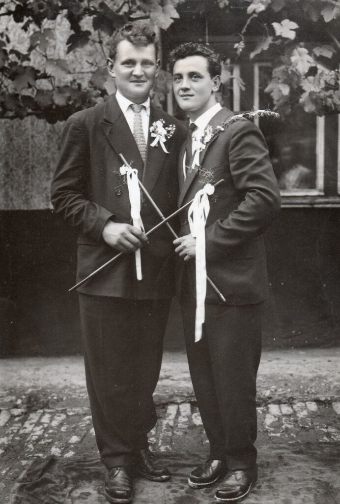 Forró József és Nagy Sándor, a két vőfély (vágaiasan vőfíny).