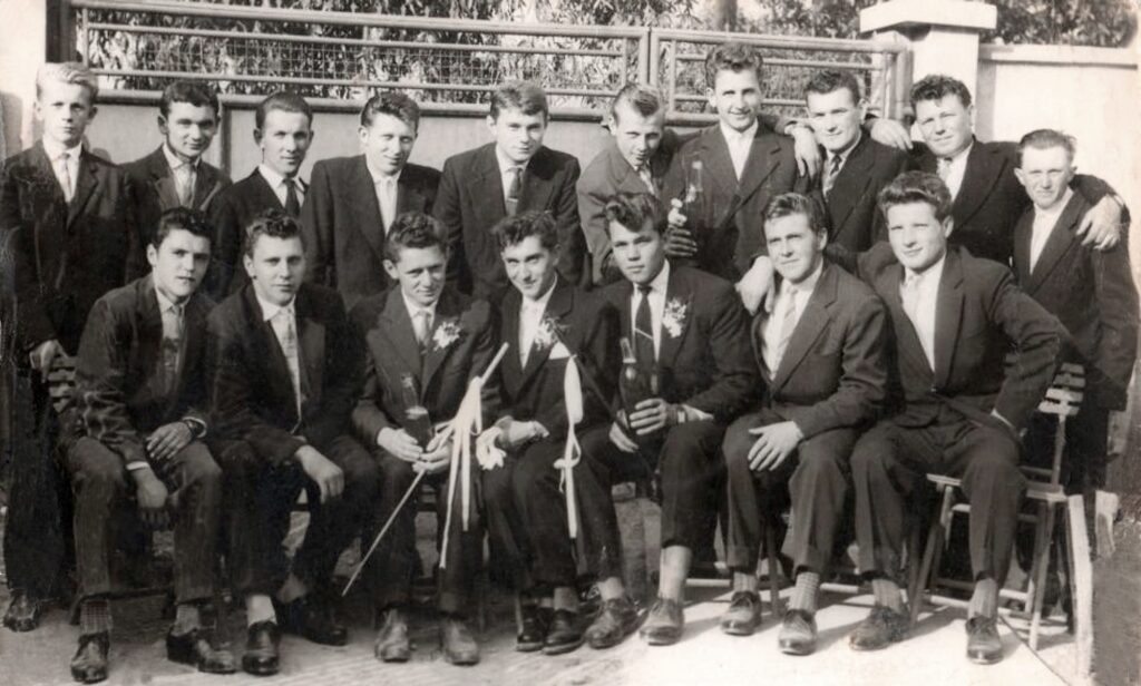 Ülnek balról jobbra: Sztoklasz István, Sztoklasz József, Karácsony László (vőfély), Farkas Jenő (vőlegény), Boledovics Ernő (vőfély), Sztoklasz ?
