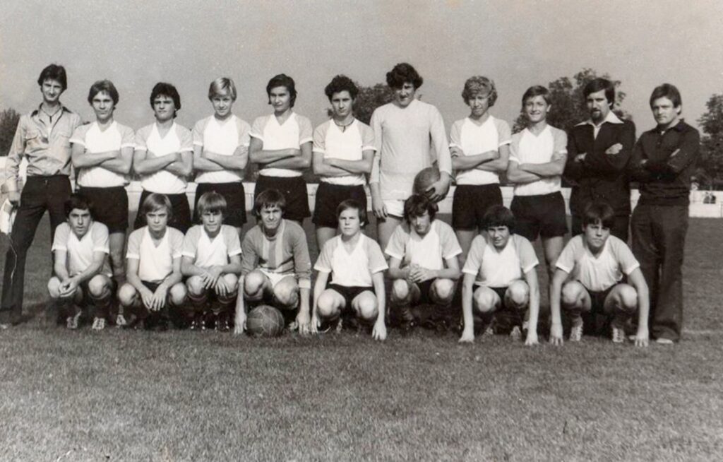 Ifjúsági csapat focistái állnak, balról jobbra: Zsigó Lubomír, Adamkó Péter, Károly László, Hlavaty Róbert, Majerník Stefan, Horváth László, Sandula György (kapus), Oravec Miloš, Beluško František, Kiácz Róbert (edző), Bakó József (csapatvezető).