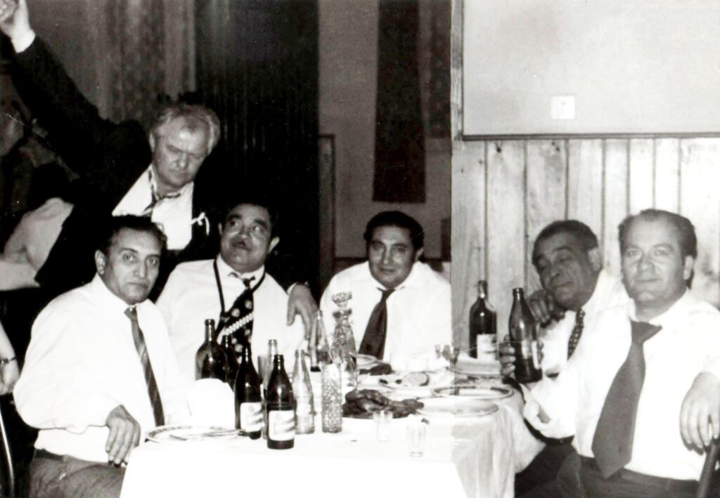 Balról jobbra: Rácz Michal (brácsás), az alsószerdahelyi Juraj Tóth, Patkoló Árpád (szakszofonos), Patkoló Gyula (bőgős), Patkoló Ernő (hegedűs-prímás), Bangó Vladimír (harmonikás).