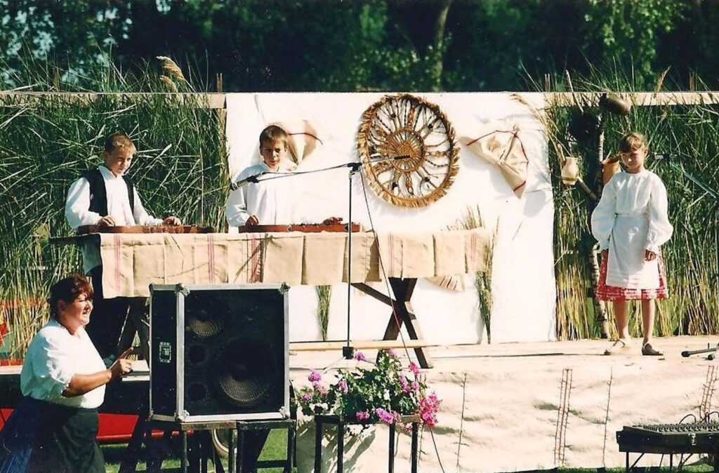 A fotó bal oldalán Kantár Éva, a folklórcsoport és citerazenekar vezetője.