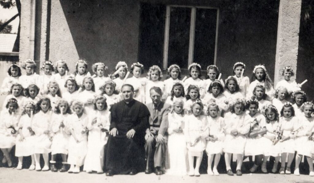 Első sor balról jobbra: Kubányi Margit, Kotroba Anna, Andriszák Mária, Kozmér Ibolya, Forró Etelka, Knézel Ibolya, Sandula Gabriella, Nagy Sarolta, Adamkó Erzsébet, Andrásfay Ödön (plébános), ?, Kleberc Margit, Adamkó Erzsébet, Spenát Margit, Józsa Erzsébet, ?, Karácsony Jolika.