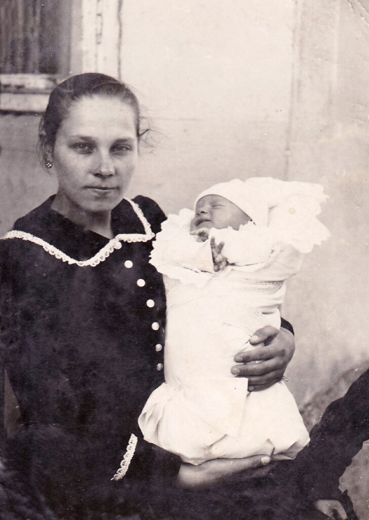 Csintalan Benőné Czunyi Margit 1946-ban, karjában Csaba kisfiával.