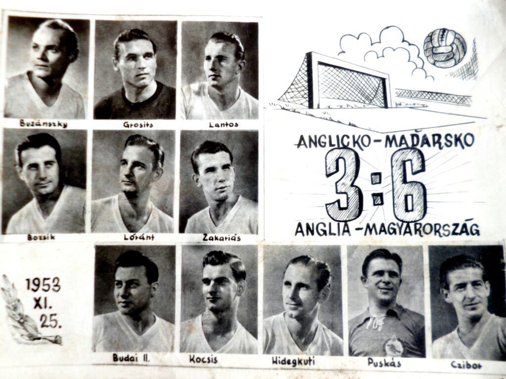 A képeslapon az Aranycsapat Anglia – Magyarország futball mérkőzés csodás eredményének emléke, 6:3 Magyarország javára.