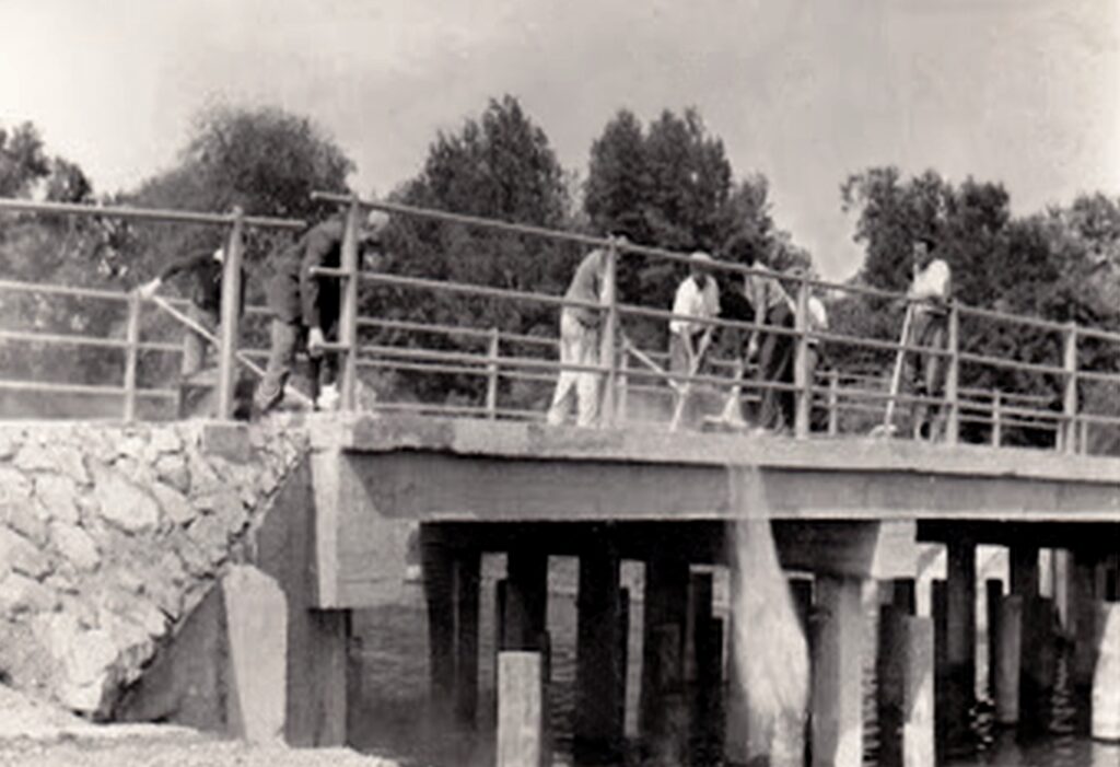 Az árvíz után a csicsóiak építik a faluból kivezető Füssi hídat.