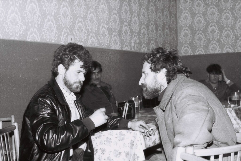 Asztaltársaság a rétei kocsmában 1982-ben, Petrla Ferenc (Szenyor), Puskás Tivadar (Puding)