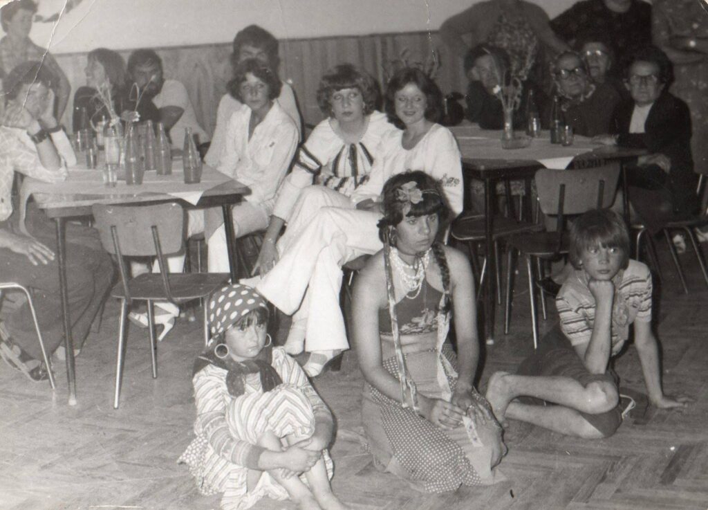 A községi kultúrházban, az asztalnál ülő nézelődők: Zsigó Magdaléna (Gálné), Gyeváth Edit (Dubnicskáné), Forró Vera (Renácsné), Gyeváth Valéria (született: Forró), Szabó Rozália (született: Takács), Forró Terézia (született: Adamkó)…