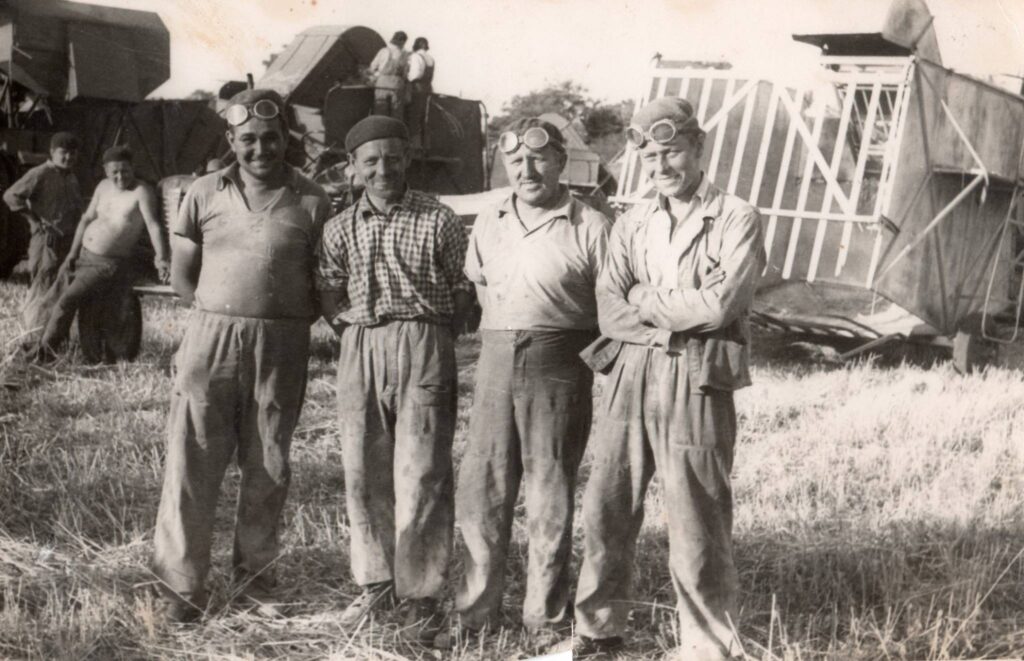 Aratók, valahol a vágai határban: Mészáros Dezső (balról), Jalsovszky Ferenc, Kamenár Gyula, Silný Michal.
