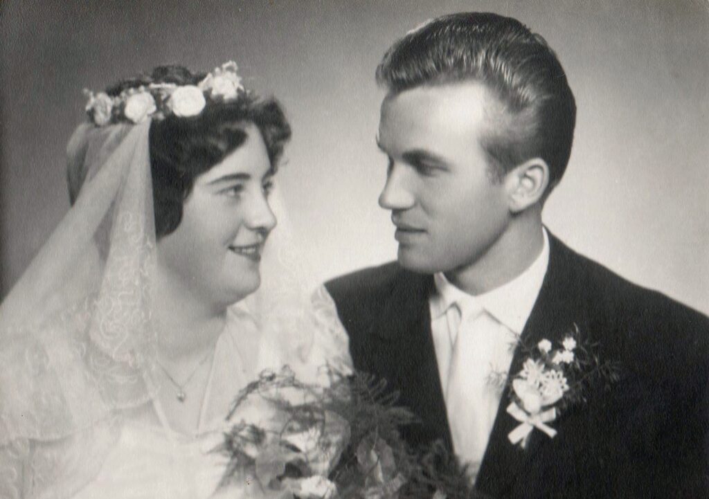 Az 1943-as születésű menyasszony, Takács Gabriella és az 1940-es születésű vőlegény, Szlízs Ernő.