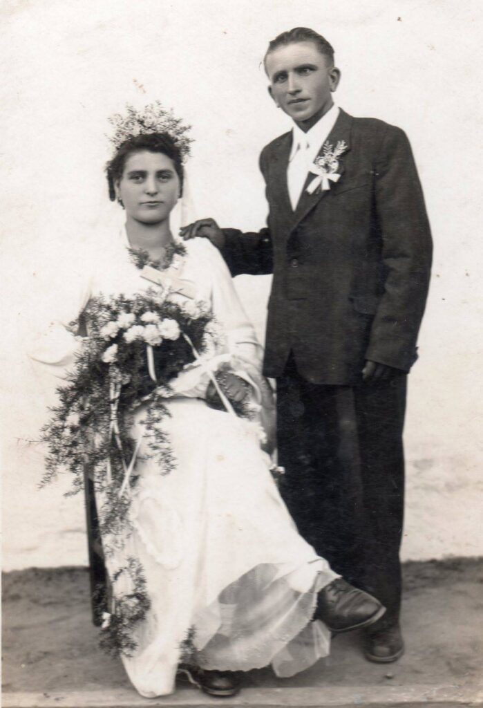 Az 1930-as születésű menyasszony, Forró Erzsébet (született: Kubányi) és az 1923-as születésű vőlegény, Forró János.