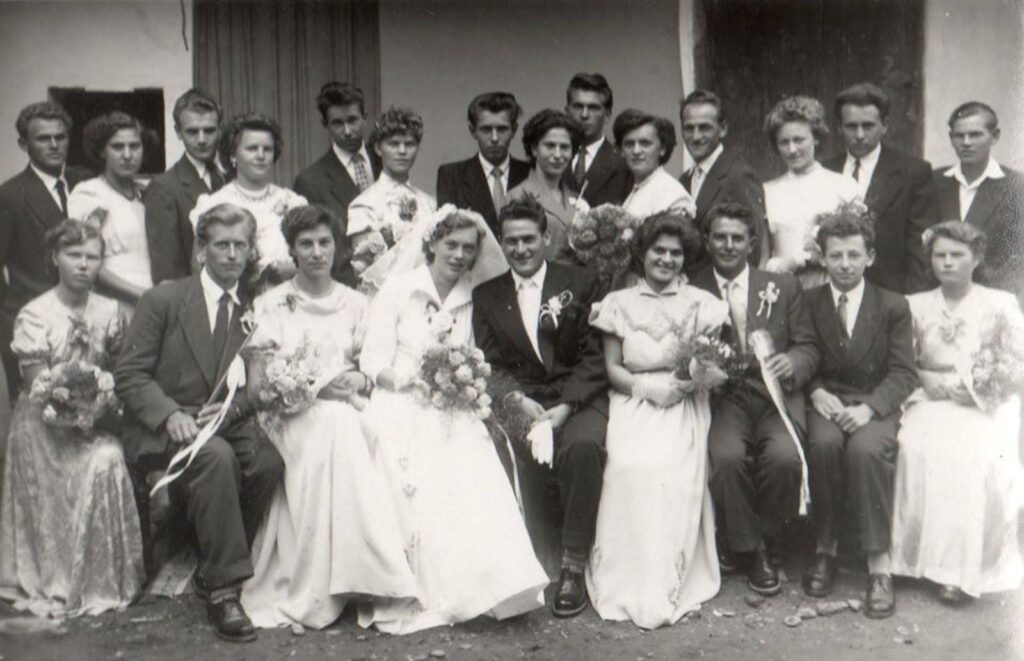 Első sor, balról jobbra: Kamenár Etela, Kamenár László (vőfély), Kiss Ilona, Forró Rozália-Mónika (menyasszony), Józsa András (vőlegény), Bitter Valéria, Farkas János (vőfély), Súrik Dušan, Józsa Júlia.