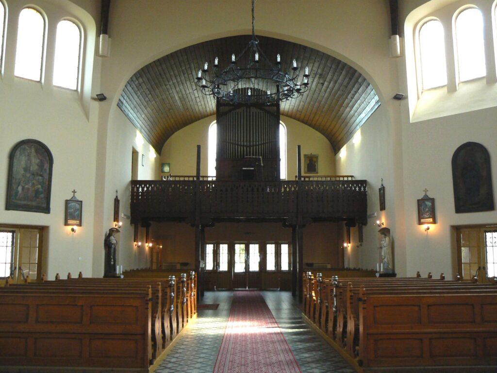 A képen jobb oldalt található egy oltárkép a régi templomból – Sarlós Madonna képtípus (Mennybe felvett Szűz Mária). Bal oldalt Anna tanítja a gyermek Máriát szintén a 18. századból származik, bár az 1780-as vizitáció ezt már nem említi. (Réckyné B. A. monográfiájából, 2007) Fent az orgonánál jobb oldalt található egy Fekete Madonna-kép, állítólag a 18. század második feléből (Súpis pamiatok na Slovensku. 1. köt. 1967. 473. o.) Ezt a képet 2020-ban a szakrális bemutatóterembe helyezték el.