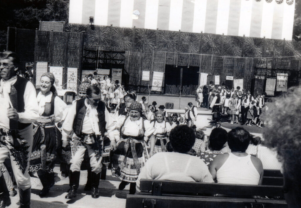 A kürti CSEMADOK folklórcsoportjának bevonulása, a myjavai folklórfesztiválon.