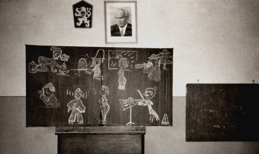 A tanév végén az iskolai táblára rajzolt tanárok névsora: Rózsa Margit, Szlízs László, Nagy Terézia, Somogyi Antal, Blaskovics Piroska, Török Ingrid, Horváthné Racskó Éva, Miklós György.
