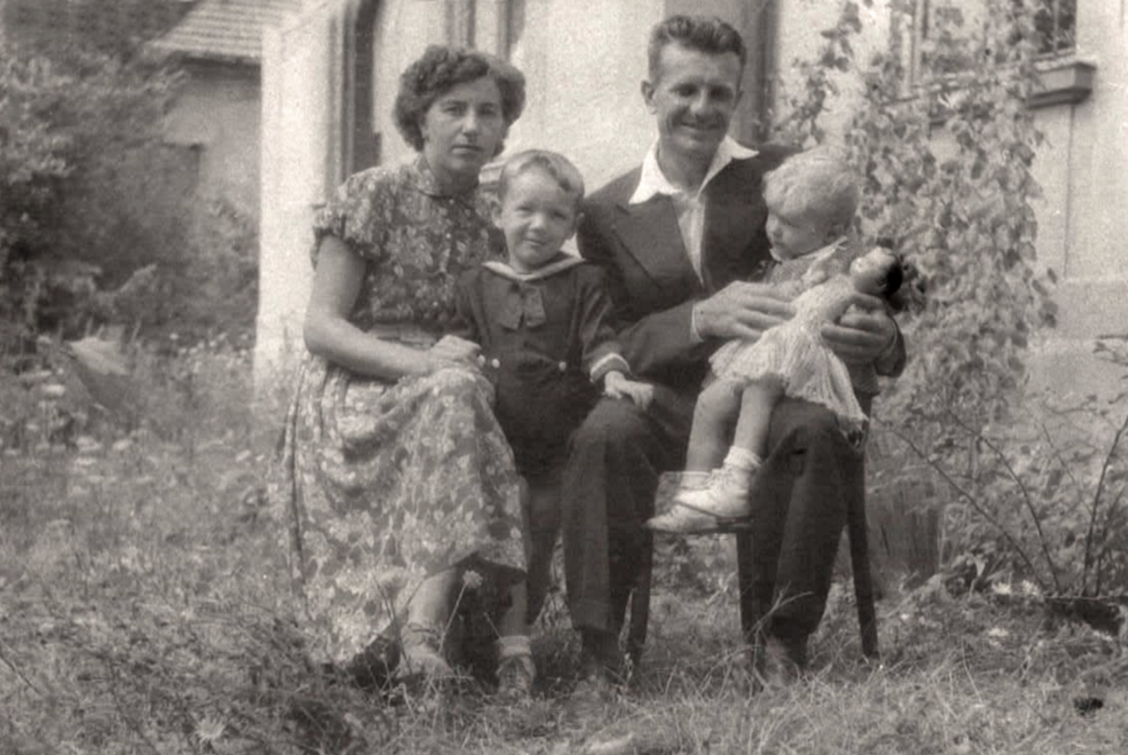 A Nemesradnótból Komáromba költözött Ferencz család fényképe: Ferencz Géza tanár, neje Pósa Irma, gyermekeik Béla és Ilona.