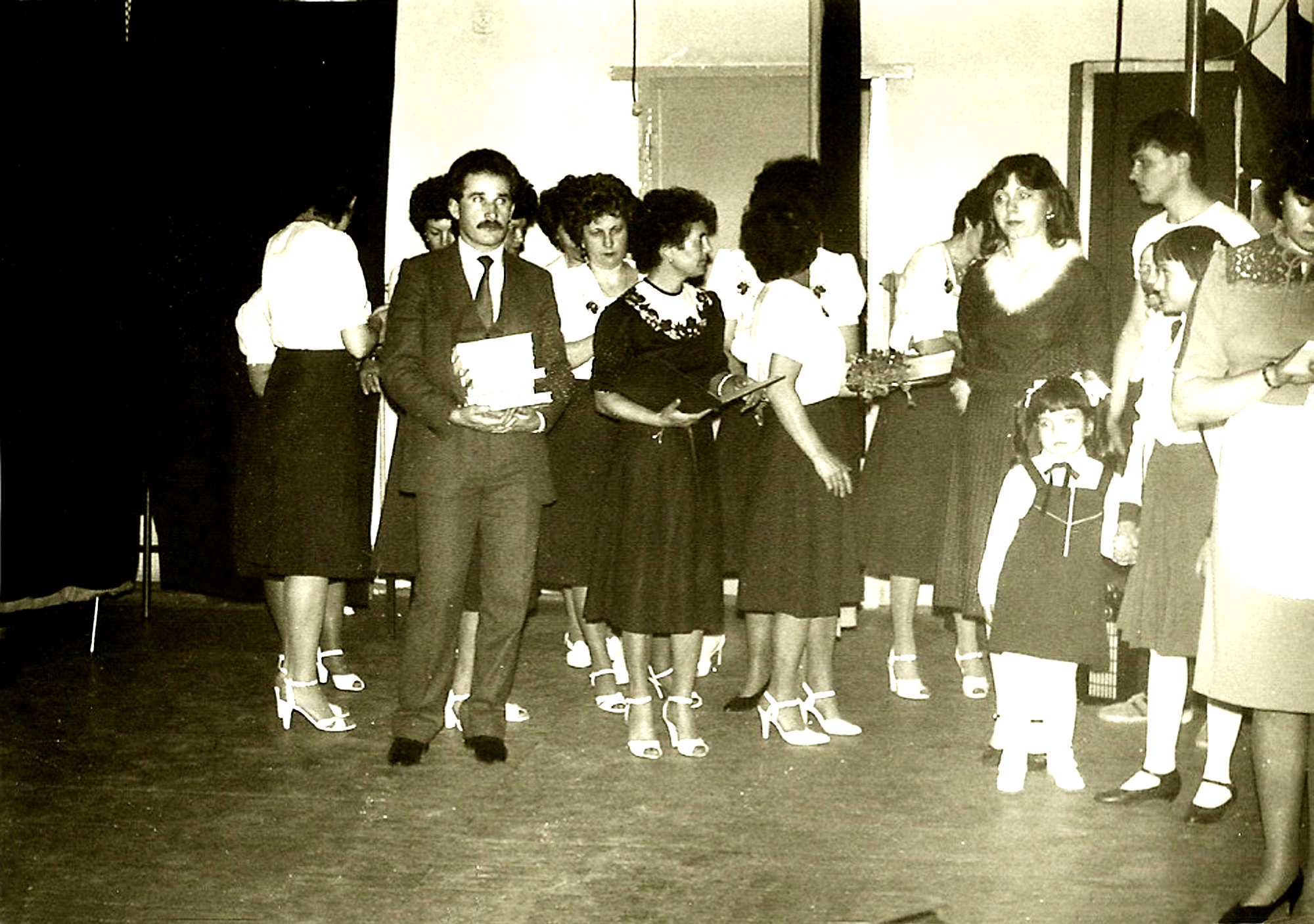 Csemadok 35 – 1984 – Szabó Dezső, Takács Miklósné, Hájas Lászlóné és a Menyecskekórus tagjai fellépés előtt
