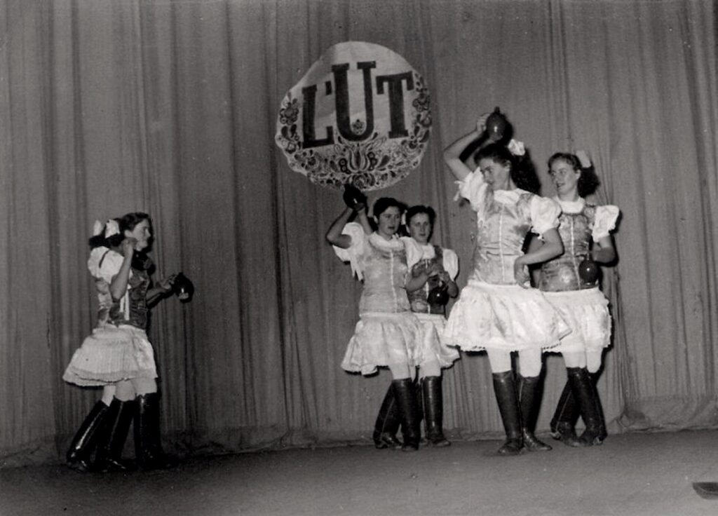 A helyi Csemadok néptáncosai a ĽUT (Ľudová umelecká tvorivosť) által szervezett fesztiválon, valamikor az 1950-es években. A tánccsoport tagjai: Csókás Erzsébet, Hanula Elza, Kovács Mária, Worák Fáni, Gléba Márta