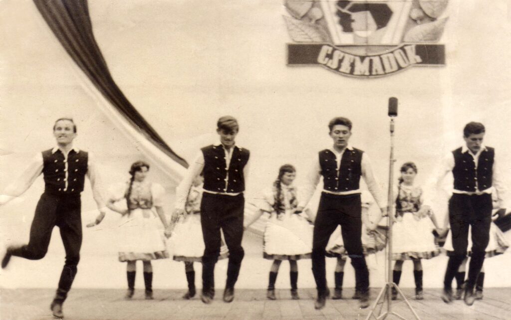 A Csemadok mellett működő tánccsoport. Gombaszög – 1962. Balról: Kasza István, Iván Dezső, Dienes Béla, Iván János.