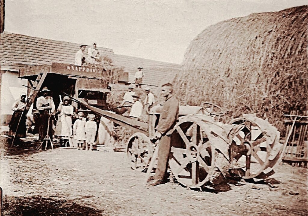 Fordson (Forcson) traktor ez erőgép, Knapp Dávid felirattal a cséplőgép.