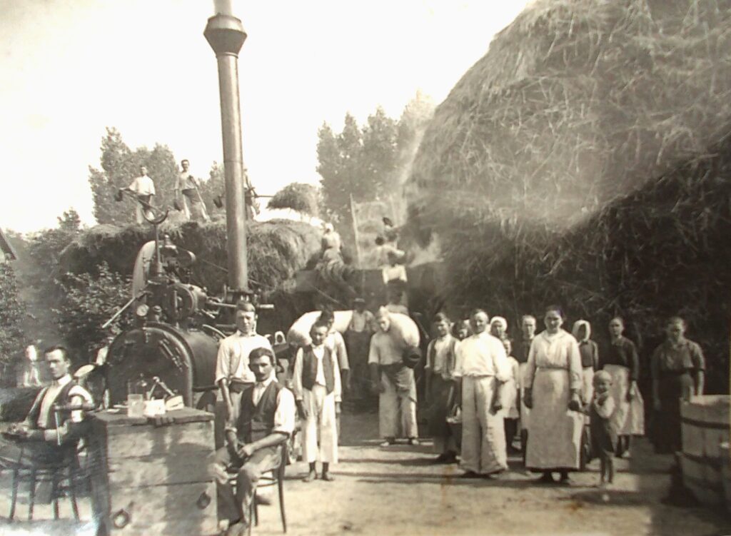 A cséplést a gazdaudvarban végezték.