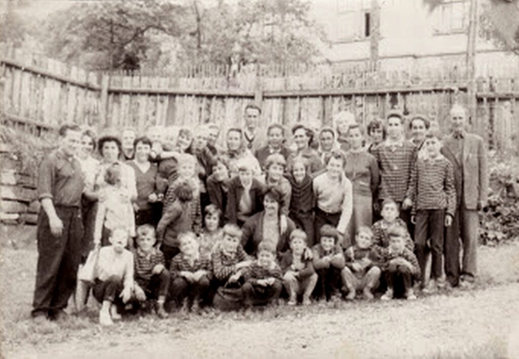 Petrás bácsi (cseh ember), mellette lánya, az mellett felesége aki Lakatos Évát fogja, hátul Győri Pálné Bödök Jusztína, (id. Beke Dezsőné) Győri Irén, hátul …….?, (id. Bódis Sándorné) Misák Mariska, cseh kisgyerekkel, id. Lakatos Károlyné Fojtík Mária, mögötte Misák Józsefné Károlyi Irén, Kovács Ignáczné Mező Margit, mögötte Szabó László, előtte felesége Szabó Lászlóné Váradi Gizella, ifj. Szalayné Vincéné (Ott) Kovács Mária mögötte Németh Béláné Váradi Karolina, Váradi Pálné Lakatos Erzsébet (Böske néni), hátul ….? , id. Kosár Nándorné Kovács Erzsébet, mögötte Himler Klára, ifj. Görözdi Lajos mögötte anyukája id. Görözdi Lajosné Vida Ilona, Himler János és id. Görözdi Lajos.
