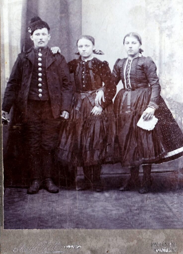 A fénykép jobb oldalán Csintalan Dezsőné, Etus látható szüleivel, 1933-ban, hetényi viseletben.