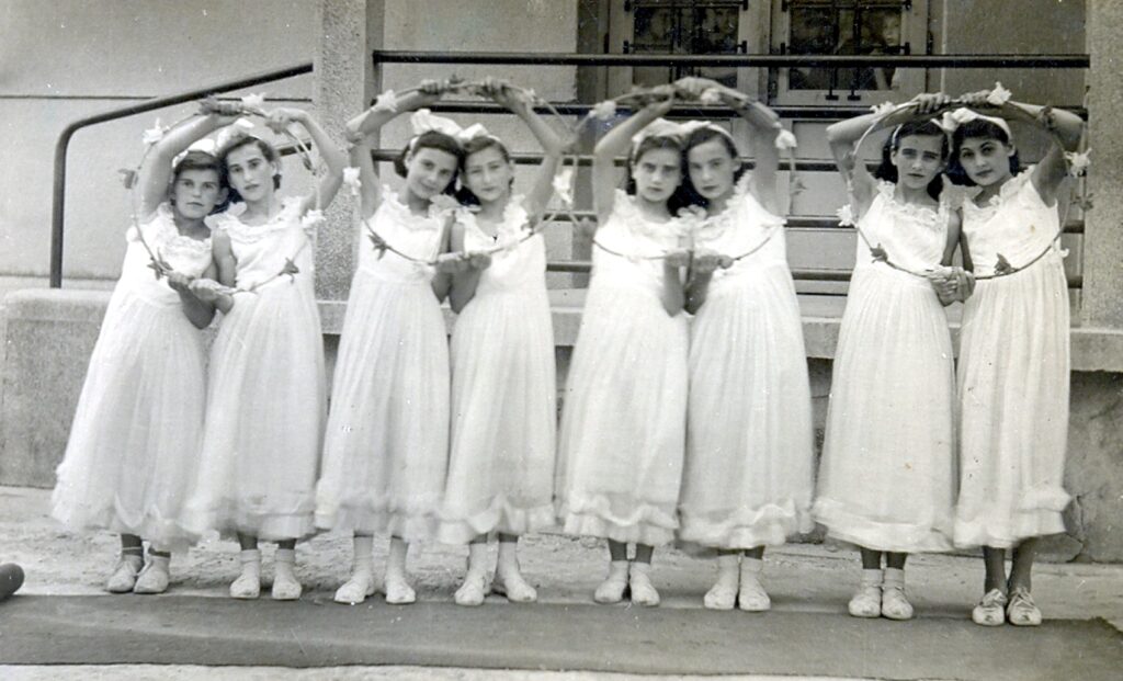 A Csipkerózsika c. mesejáték sok szereplőt foglalkoztatott. A képen a táncosok láthatók.