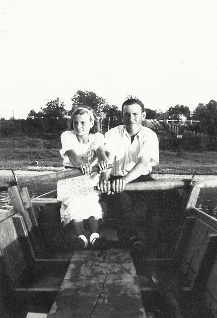 A képen Baka Ferenc (szül.1919) rokonával a Dunán csónakáznak.