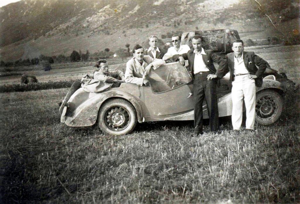 Dénes György barátaival az 1950-es évek elején Pelsőcön.