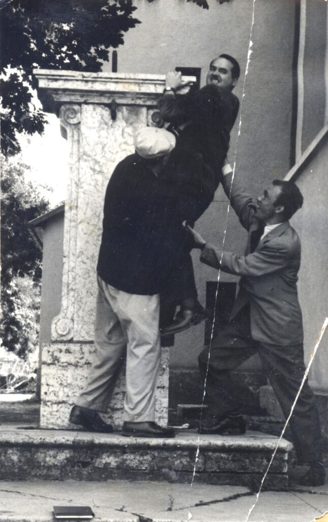 Zselízen az 1950-es években. Balról: Kónya József, Dénes György, Duba Gyula
