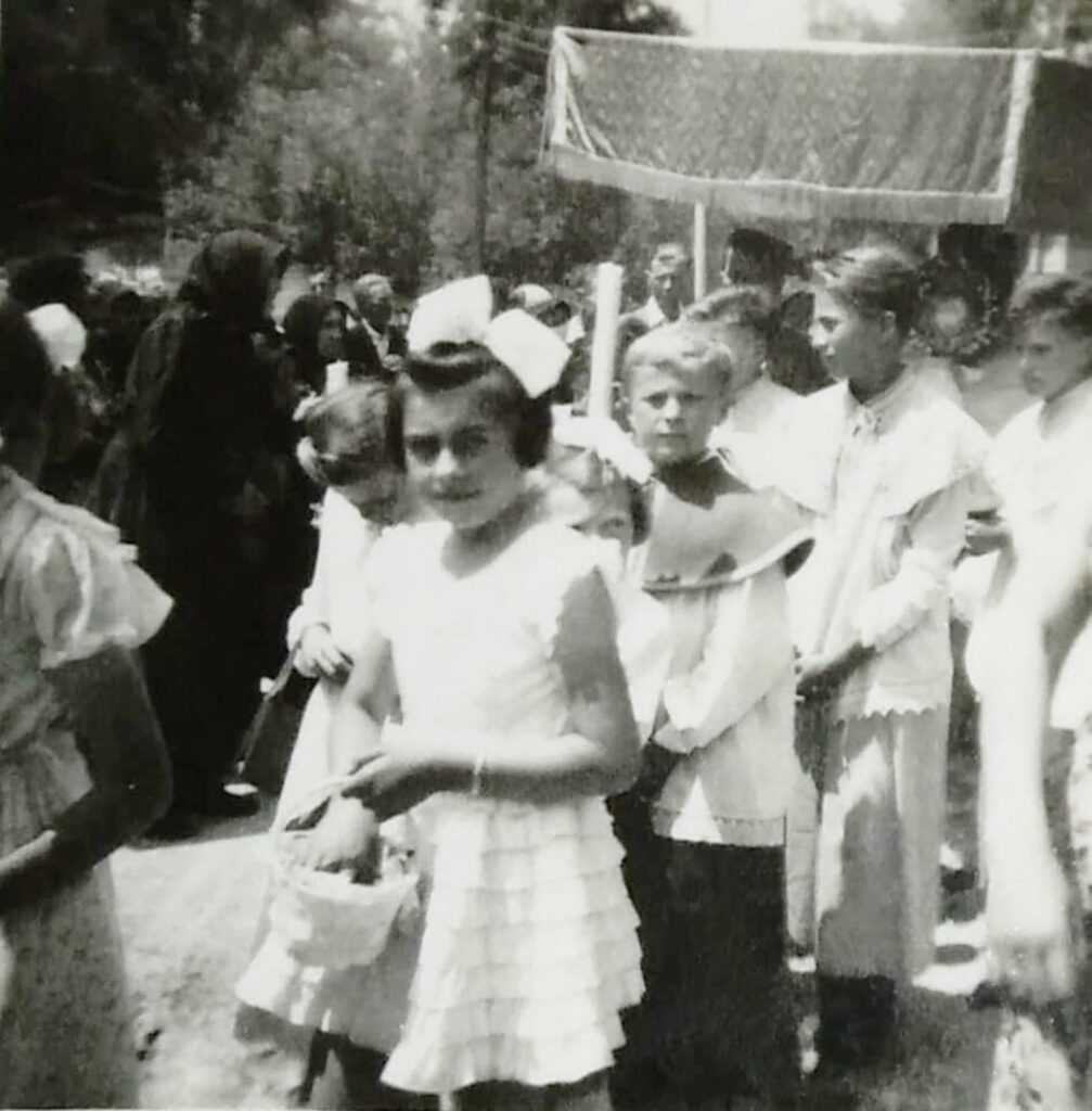 Első áldozás Nagybalogon 1955-ben. A kislány Bogyó sz. Balázs Éva.
